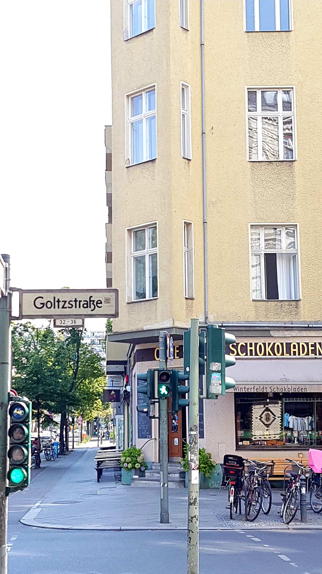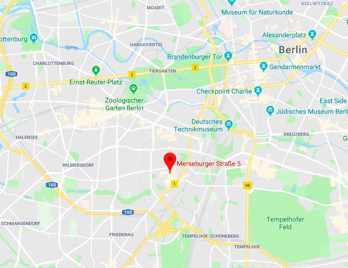 Ta U7 til stasjonen Eisenacher Strasse. Gå mot utgangen i retning Grunewaldstrasse, Schwäbische Strasse og Akazienstrasse.