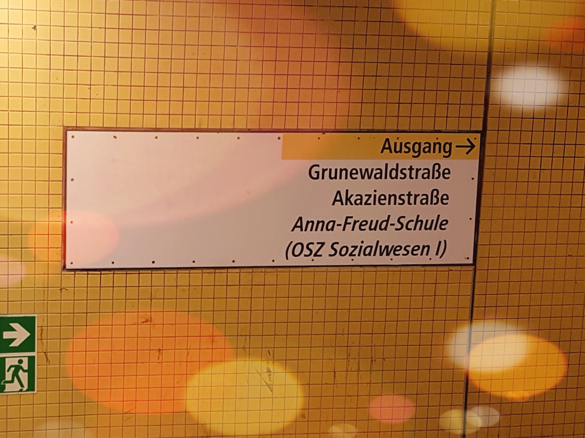 Følg skiltet mot Grunewald- og Akazienstrasse, og Anne-Freud-Schule, opp trappen.