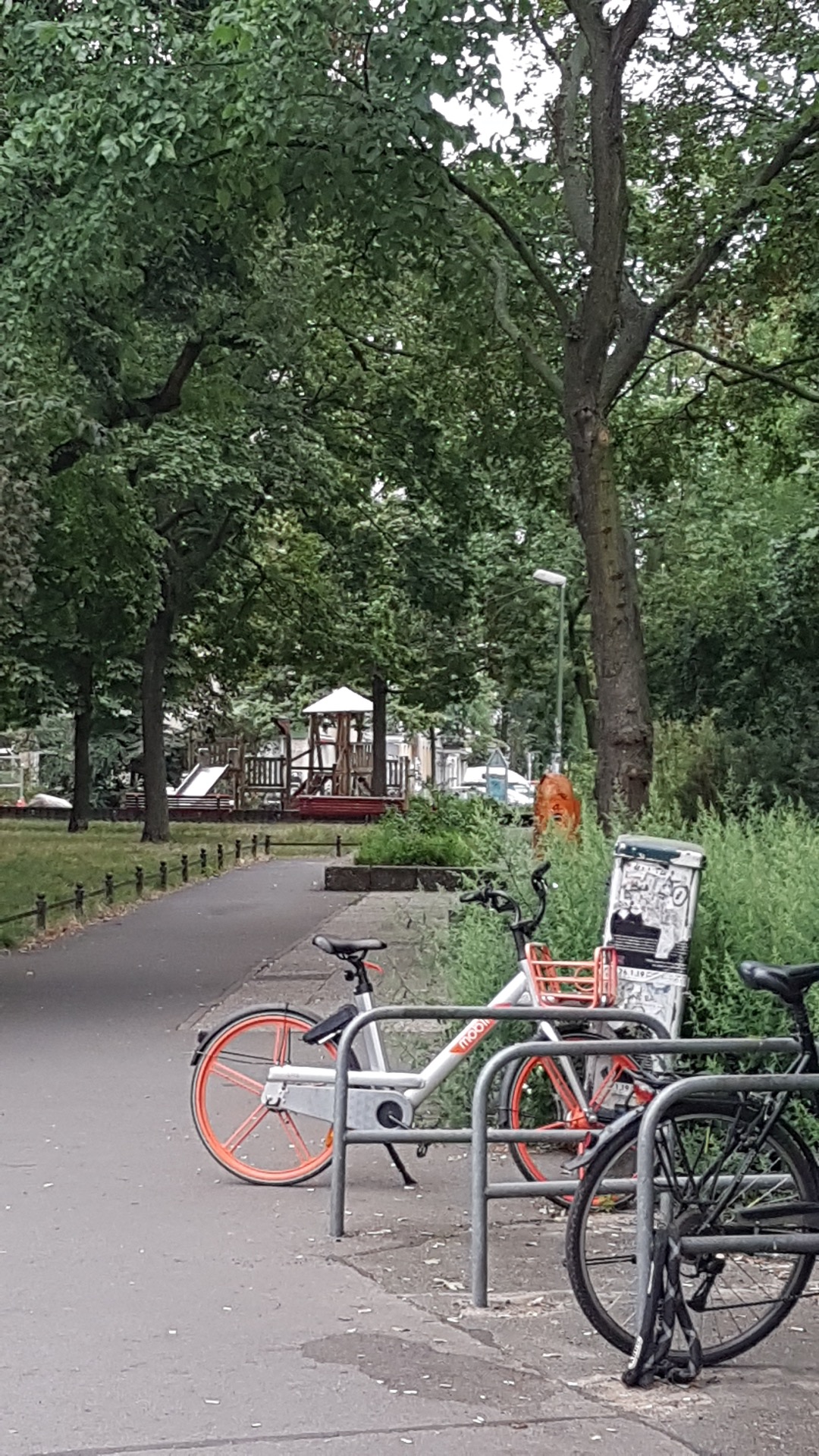 Ta den lille gangveien som går rett fram, dvs. på høyre side av kirken. Du går forbi et sykkelstativ, noen benker og en lekeplass. Kryss over neste gate, som er Apostel-Paulus Strasse, og du er i Merseburger Strasse.