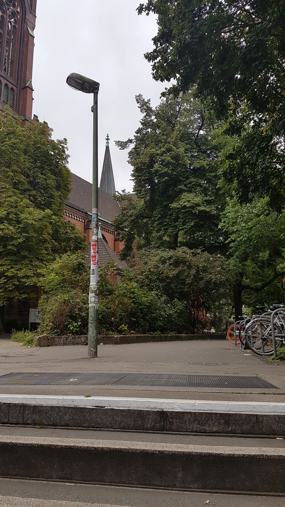 Når du kommer opp fra stasjonen har du Apostel-Paulus-kirke rett foran deg.